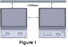 • Observe the minimum distances between the devices, between the device and the wall and above the assembly (min.100mm). •